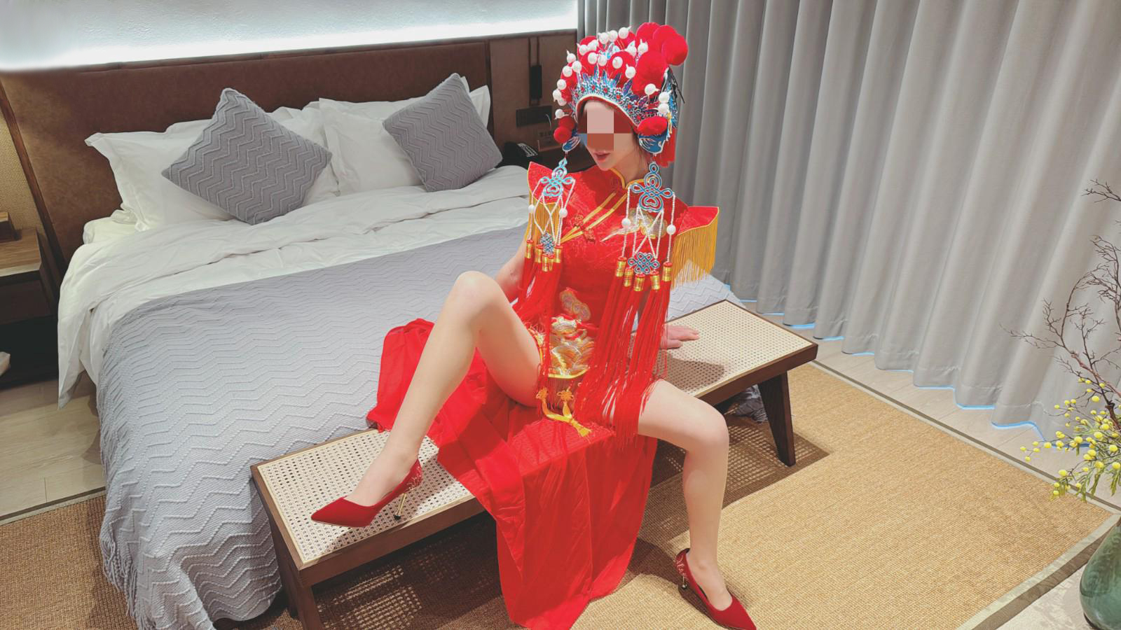 估计昨晚老哥们肯定忙的很,是不是酒店又爆满了呀,昨天的一炮可是干两年啊,幸好我的跨年炮提前打了,不然家里人多还不太好弄呢,当所有的想法在我脑海里过一遍,我在想用什么样的礼物来回馈给守了我三年的老哥们,那就让姐姐穿上极具国粹特色的中国红来给大家拜年吧,这次我还特意的满足了几个老哥想看的视角,舒服!" \( I6 k$ O' A O